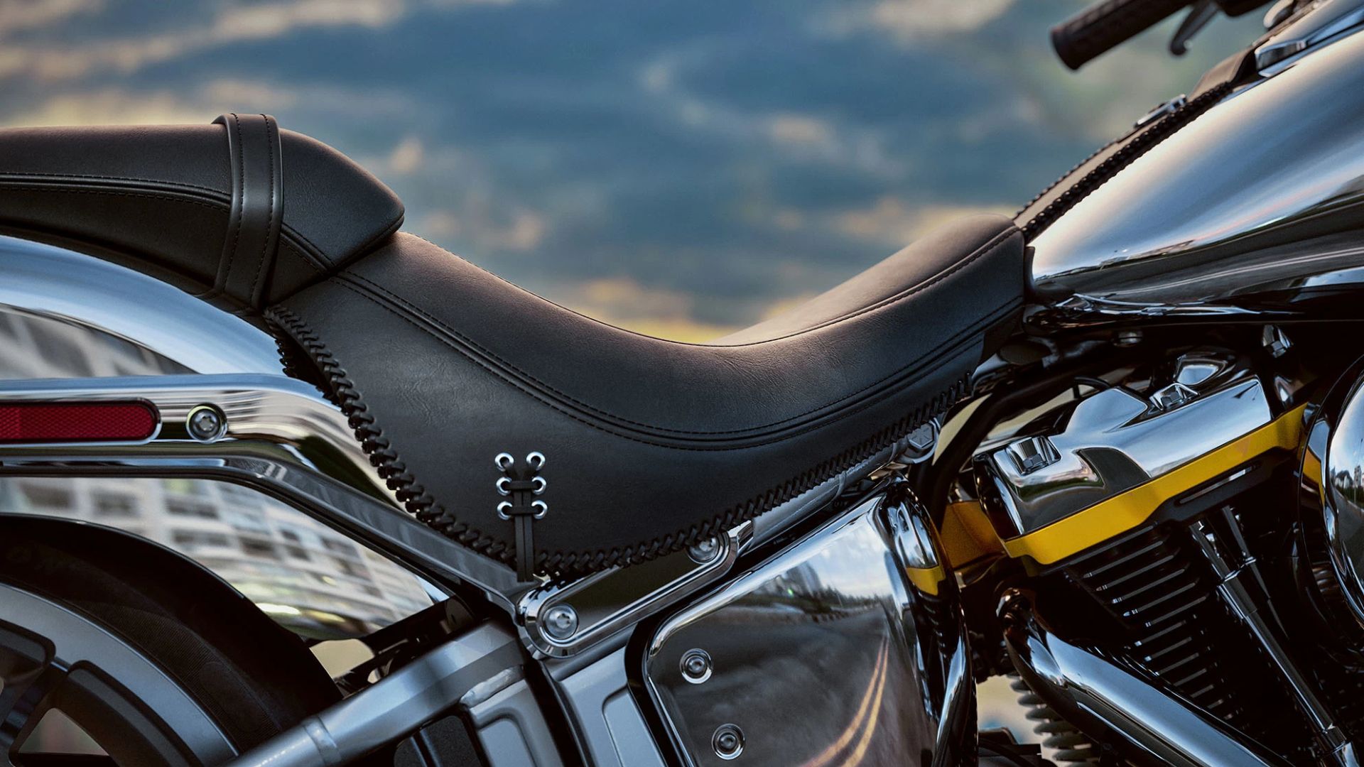 Chrome alone doesn’t make a legend. The flat‑wing tank medallion, yellow‑touched rocker and timing covers, and leather tank strap echo the 1990 “Gray Ghost” without getting stuck in amber. Modern Lakester cast‑aluminum wheels channel the original solid discs and still leave room for fat Michelin Scorcher rubber—160 mm up front, a road‑‑devouring 240 mm out back—so the silhouette stays unmistakably, aggressively Fat Boy.