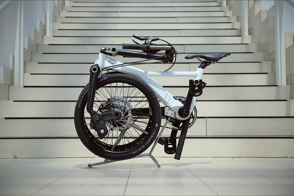 A first glance at Siggi evokes thoughts of minimalist art with a functional twist. The frame, as slender as it is durable, is crafted from a proprietary composite material, StoneWeave, a brilliant blend of carbon fiber and basalt. This fusion of materials is not only robust and lightweight but also fully recyclable, striking a refreshing chord with eco-conscious urbanites. This StoneWeave composition extends to the left-side fork, further enhancing the bike's compact fold. The rear rack, in a splendid double duty role, serves as a parked stand. A handle-like top tube further adds to the convenience, making it a breeze to carry around.