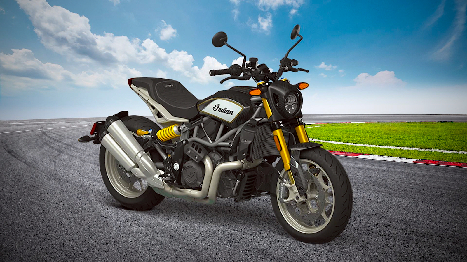 The suspension, with fully adjustable Öhlins on both ends, lets you dial in your ride, making it as pliant or as stiff as you like. Teamed with Metzeler Sportec rubber that sticks to the road like a desperate lover, and 17-inch cast wheels that flick side-to-side like Fred Astaire, the FTR R Carbon offers a riding position that's been optimized for real-world domination.