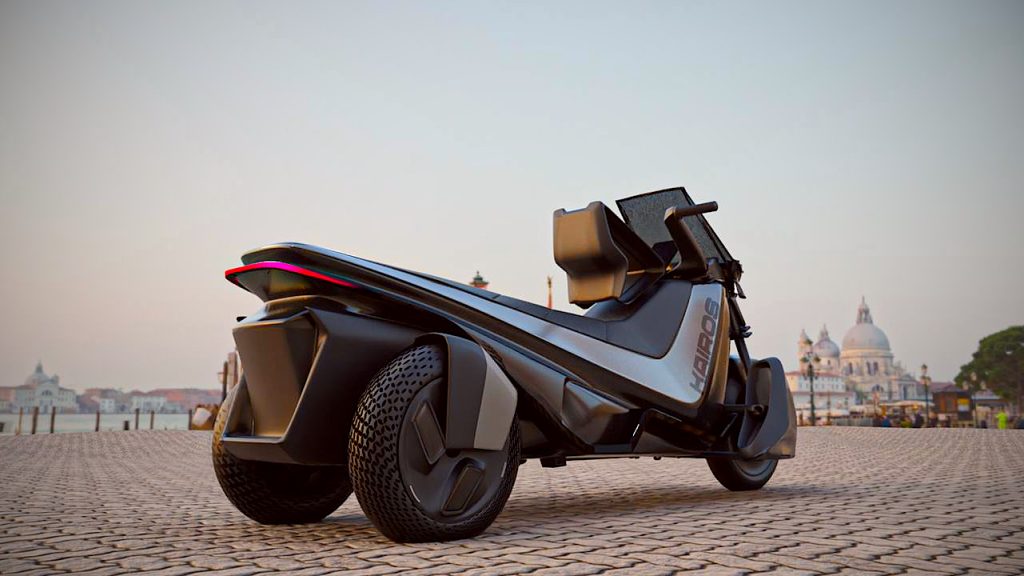 Safety isn't an afterthought here. The Kairos comes with Mobile Lateral Elements (MLEs) on either side of the front wheel. These aren't just for show. As you corner, these wedge-shaped appendages tilt with the vehicle, ensuring stability by acting as counterweights. In those rare moments when you might overdo it, the MLEs are designed to touch down gently, propping the EV back up and keeping you on your intended path.