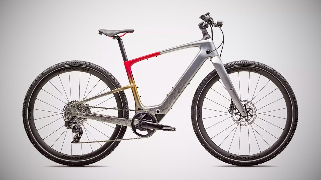 - High-End Components: Features premium parts like SRAM electronic-shift drivetrain, Roval Terra carbon wheels, and a Specialized Power Pro Mirror saddle for enhanced performance and comfort.